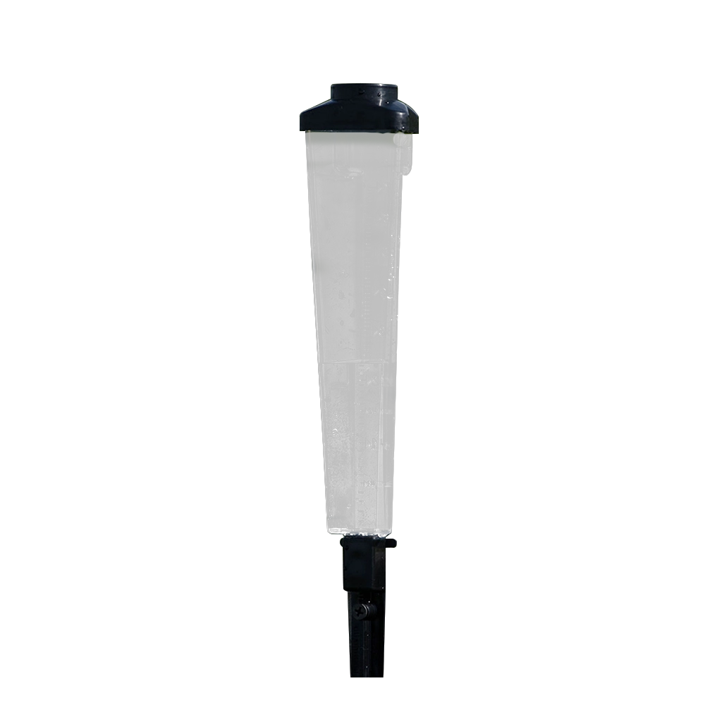 Acrylic rain gauge with black top and black stake. This is a great promotional item with lots of ad space. Rain gauge will hold 7 inches of rain. The tapered point can be inserted into the ground or it can be mounted to a post of deck with your own screws.USA Made