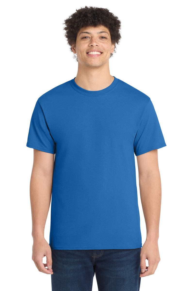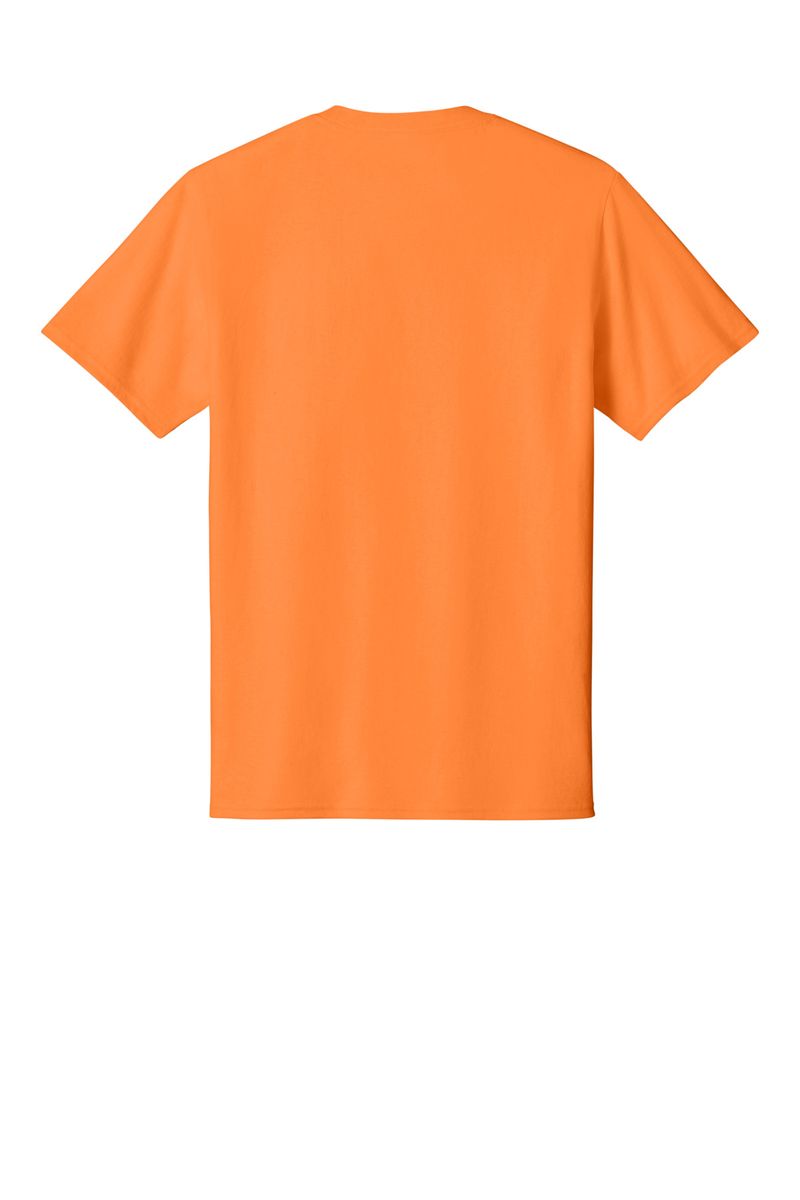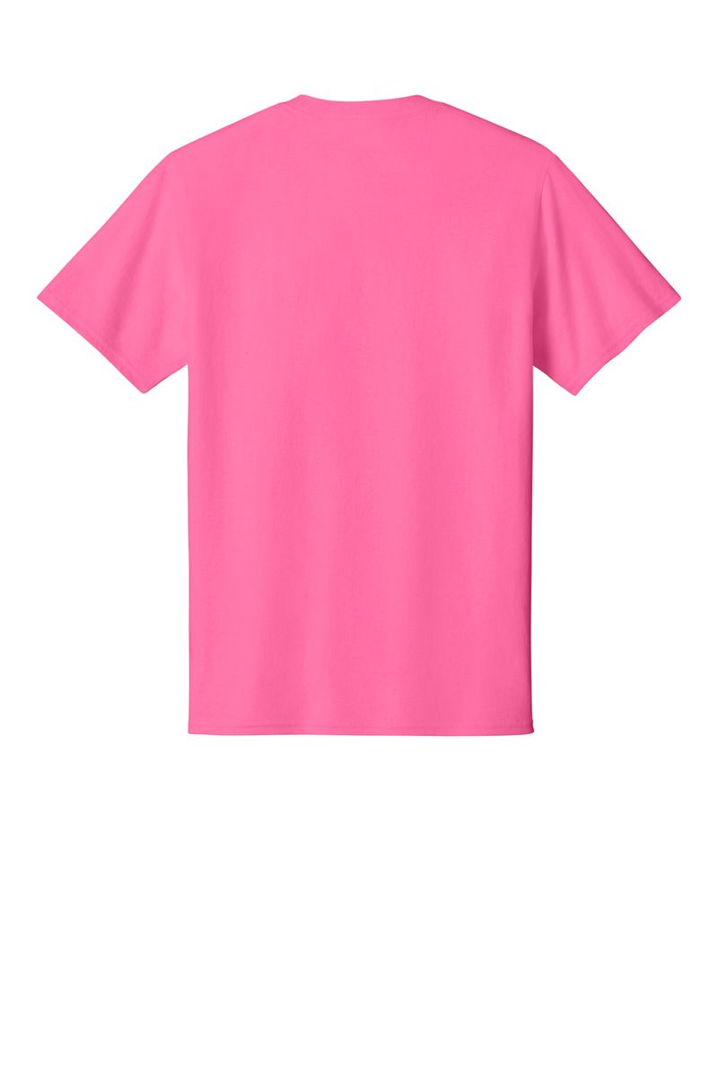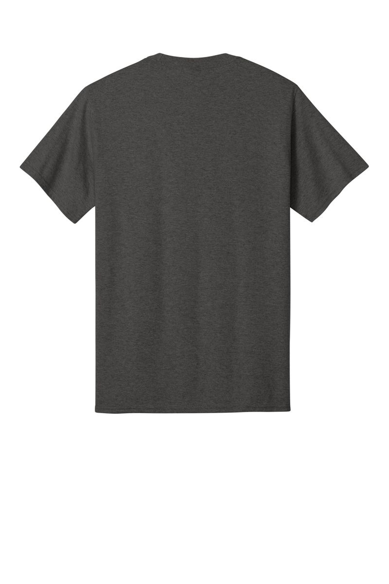 50/50 cotton/poly (Black Heather, Dark Heather Grey, Graphite Heather, Heather Athletic Maroon, Heather Dark Chocolate Brown, Heather Navy, Heather Purple, Heather Red, Heather Royal, Heather Sangria, Heathered Dusty Peach, Neon Blue, Neon Green, Neon Orange, Neon Pink, Neon Yellow, Oatmeal Heather, Olive Drab Green Heather, S. Green, S. Orange)