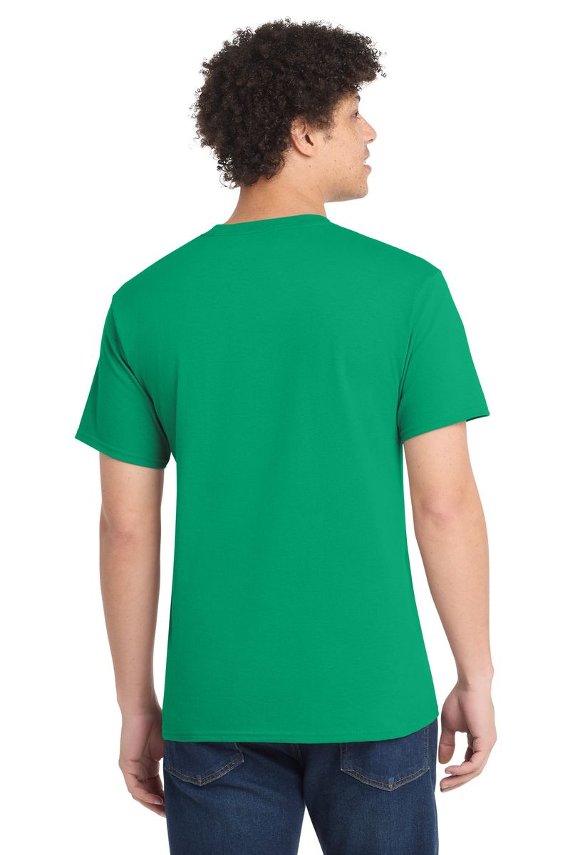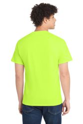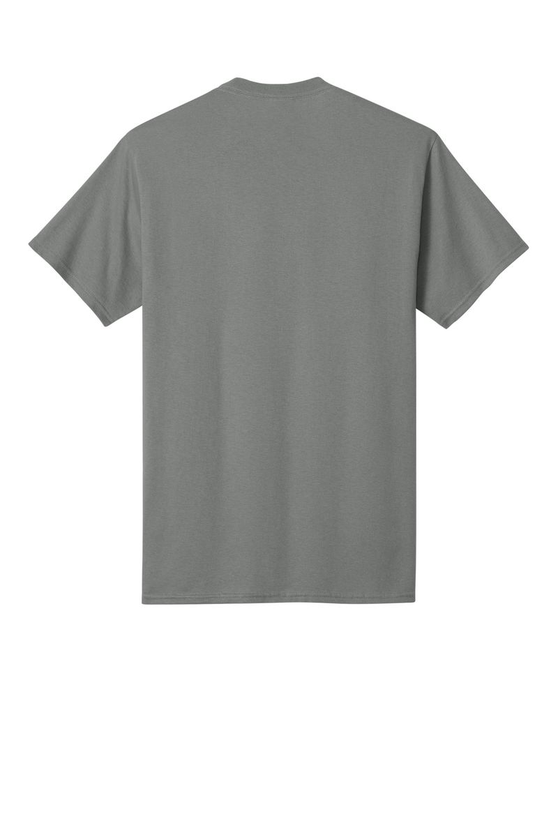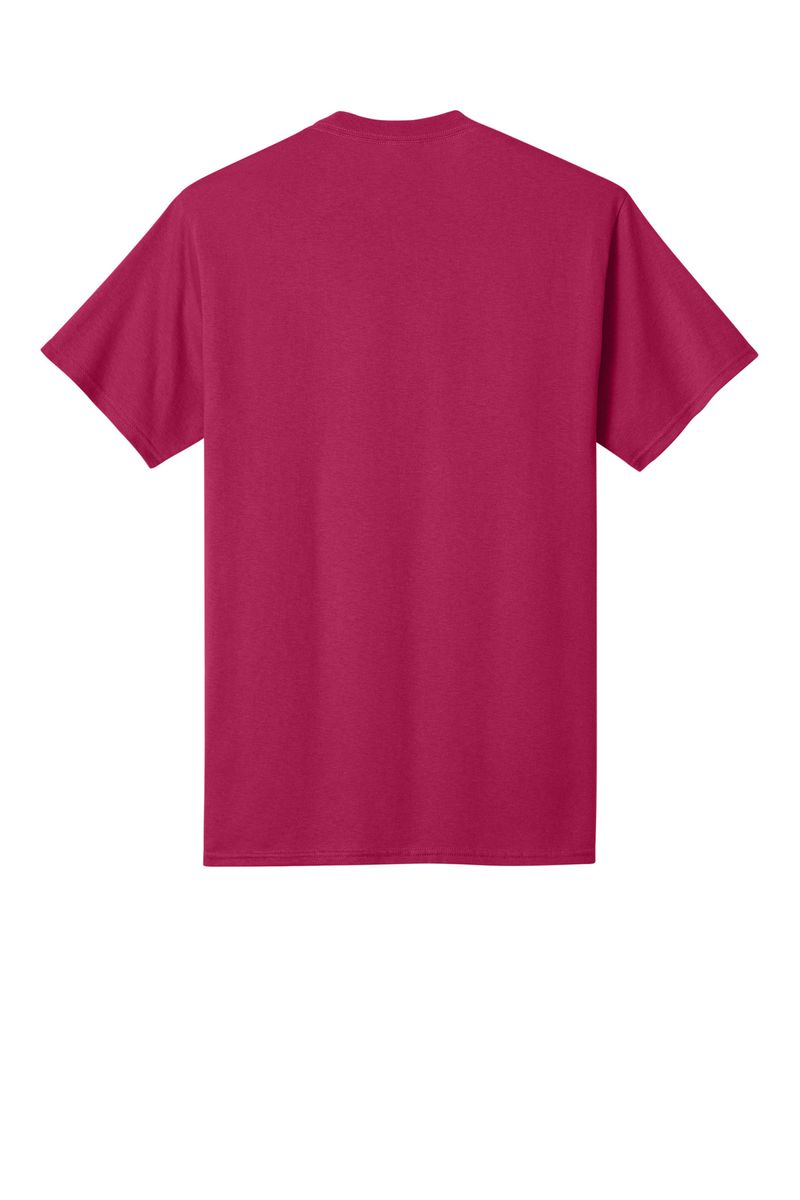 50/50 cotton/poly (Black Heather, Dark Heather Grey, Graphite Heather, Heather Athletic Maroon, Heather Dark Chocolate Brown, Heather Navy, Heather Purple, Heather Red, Heather Royal, Heather Sangria, Heathered Dusty Peach, Neon Blue, Neon Green, Neon Orange, Neon Pink, Neon Yellow, Oatmeal Heather, Olive Drab Green Heather, S. Green, S. Orange)