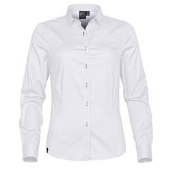 Description: Four-way stretch, full button, fitted dress shirt highlights a tailored collar, a contoured curve hem for stylish design, and reinforced contrast color button-hole stitching.